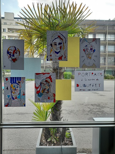 Outre la visite, les élèves (et leurs professeurs) ont également participé à un atelier de dessin : il s'agissait de faire le portrait de son camarade à la manière de Dubuffet. Les oeuvres ont ensuite été affichées dans le hall du lycée.